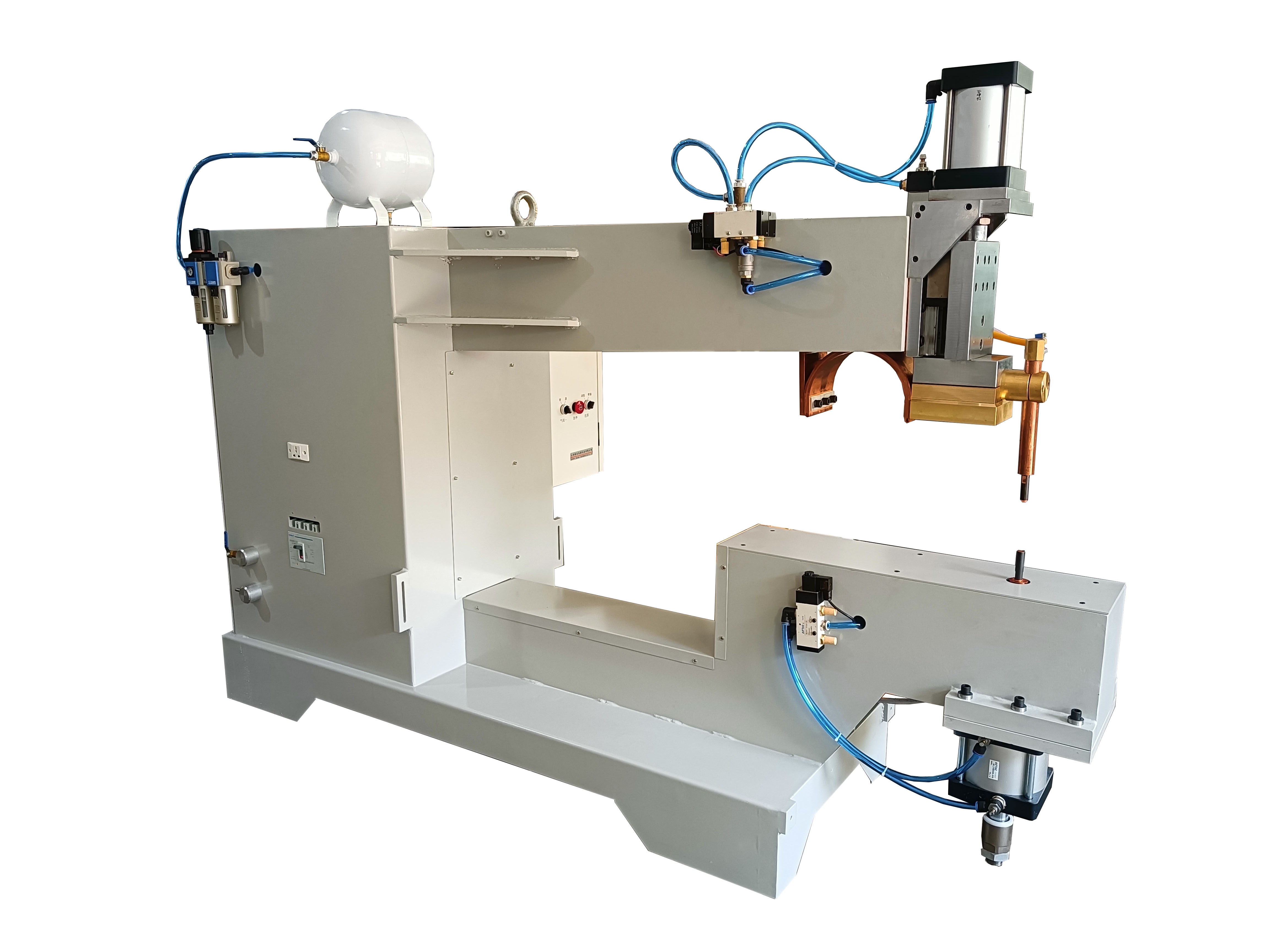 縫焊機就是指焊件裝配成搭接或對接接頭并放置于兩滾輪電極中間,滾輪電極加壓焊件并旋轉,連續或斷續脈沖送電,形成一條連續焊縫的電阻焊機器??梢哉f,縫焊機是點焊中的一種演變。